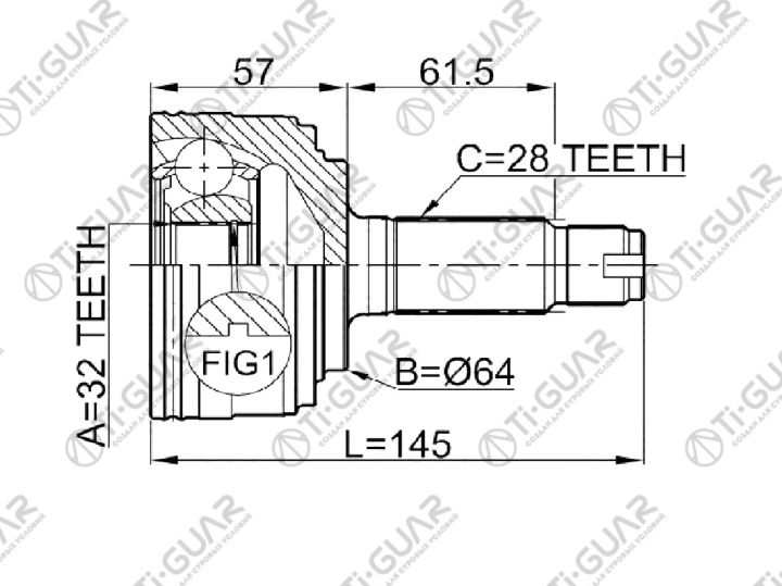 ШРУС наружный /TI-GUAR для Honda CR-V 1998-2000, Inspire UA1 UA2 1995-1998, Prelude 1996-2001 /32*64*28; TG-4433; (HOE033A HO033 TG4433Z50) HO33 HO033A50